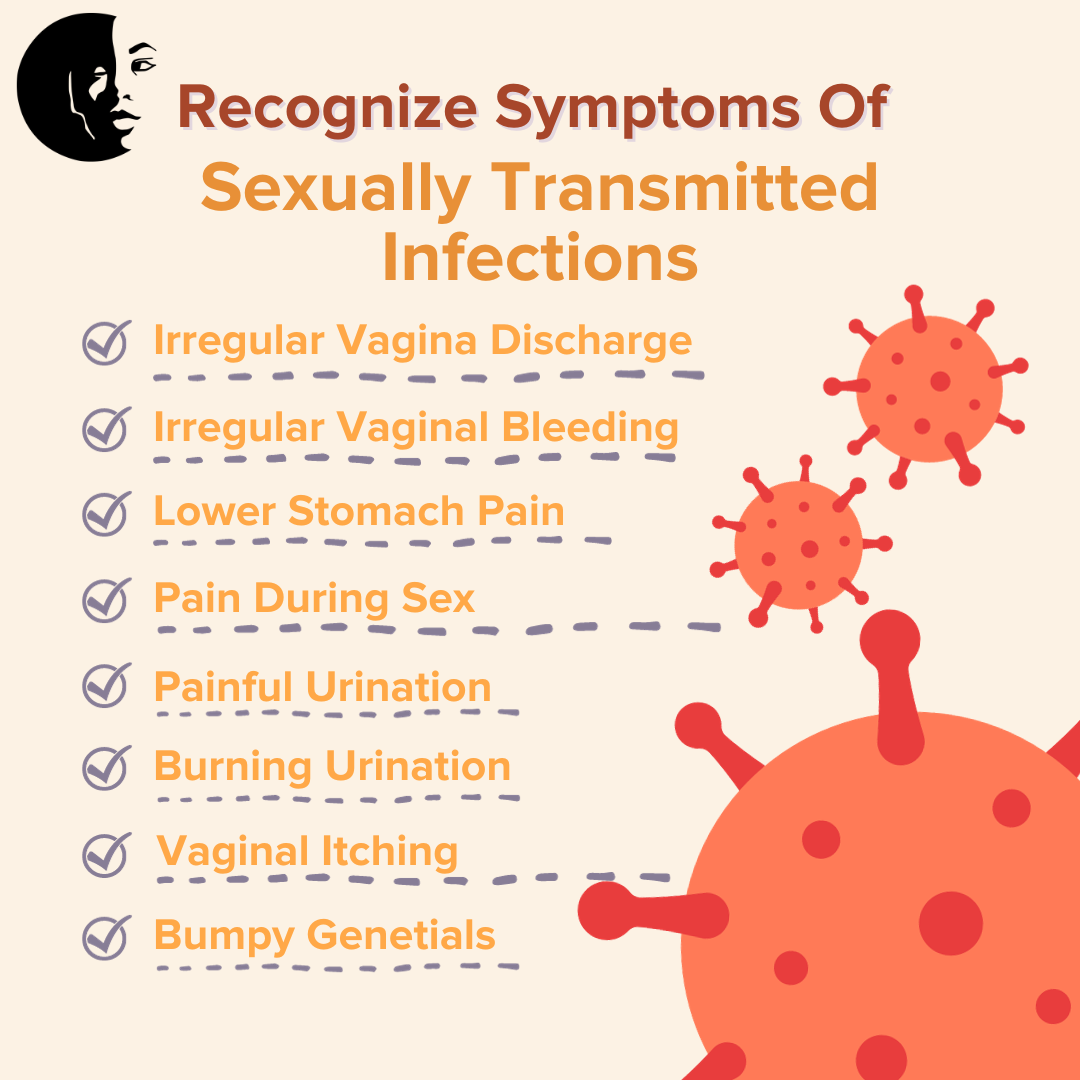 A lot of people don’t know they have an STI, since symptoms can take a while to show up or not at all. It is easier for women to catch STIs due to the thin nature of the tissue lining the vagina. Women are less likely to experience symptoms, not be able to see symptoms, or believe they might be other things, such as a yeast infection.